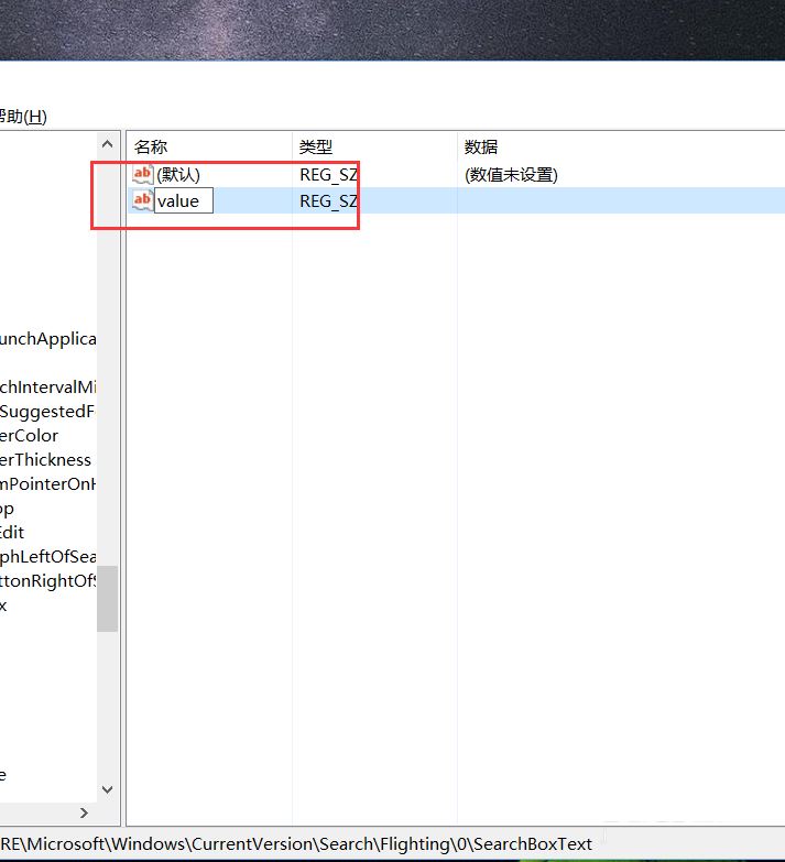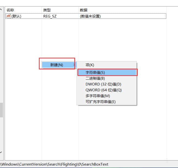 7、接下来,我们将新建立的子项命名为“searchboxtext”,然后对着该子项击右键。