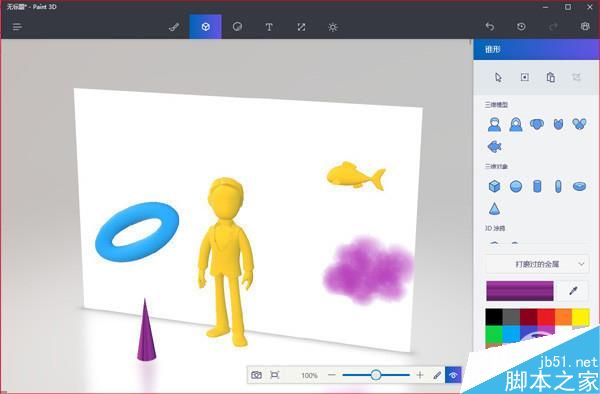 画图在windows中可谓年代久远,不过在win10创作者更新中,一款全新的3d版画图正在慢慢替代它。新版画图增加了很多功能,比方说你可以建造立体模型,然后为这些立体模型穿上不同的”衣服“,或者直接用画笔在画布中”刷“上仿真的排笔,将”画布“竖起来,让模型能够在一个立体空间内活灵活现地展示……。总之,3d是这一款画图工具的最大看点,而与其他win10 3d组件(如3d build)完美衔接,则让新画图更加实用。