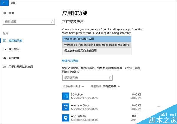 随便下载一款软件就能安装,不得不说是一项很大的风险,尤其对于设备集成度较高的平板用户尤为明显。为此新版win10创造者更新增加了一项新功能,能够让系统只接受应用商店或应用商店外app这两种安装来源。由于应用商店里的应用,整体安全性还是较高的,因此对于提升整个系统的安全性大有帮助。不过考虑到目前这种模式并不适合现行的pc生态,微软还是在这里加入了一个选项,使用者可以根据需要自行选择限定的级别。当然你也可以说这只是一项防君子不防小人的设置,但看看多少人购买苹果手机后就去越狱,便可见一斑了。