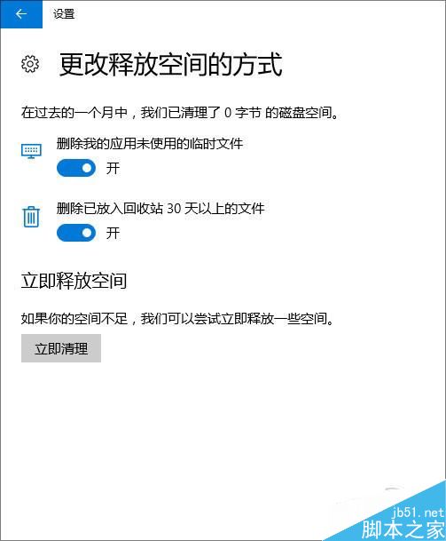 新版win10创作者更新首次引入了垃圾文件自清理功能,30天以上的垃圾文件及回收站文件,都会被系统自动清理掉。此外用户也可以根据需要手工执行清理,位置就在“设置”→“系统”→“存储”标签下。