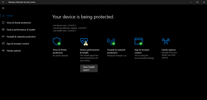 据外媒报道,近日,windows 10 insiders项目组向fast ring参与者推送了最新的build 15042。更新包括了对最新为uwp打造的防御工具windows defender的一些功能调整,其中最主要的两项改变为:全新的app & browser控制选择面板;重新调整的home布局。