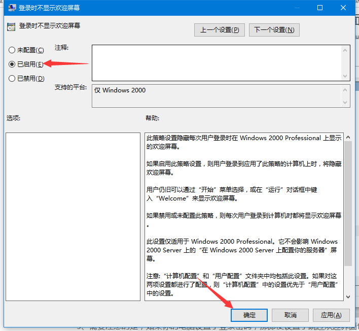 以后开机时就不会显示欢迎界面了,不过如果你的电脑有开机密码的话是无法跳过欢迎界面的。