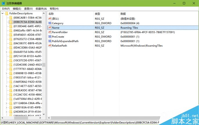无论是快捷路径还是guid信息,在每一个windows版本里面都有所不同,那么用户如何查询这些信息呢?首先打开系统的注册表编辑器,接着展开到:hklm\software\microsoft\windows\currentversion\explorer\folderdescriptions\,这样在下面就可以看到很多的guid信息。点击每一个guid信息后,就可以在右侧窗口里面看到一个name项目,而它对应的信息内容就是相应的快捷路径。