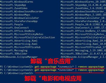 4、下面,为了方便大家的操作,除去上面介绍的卸载“音乐应用”命令,再来介绍几条用得较多的卸载命令: