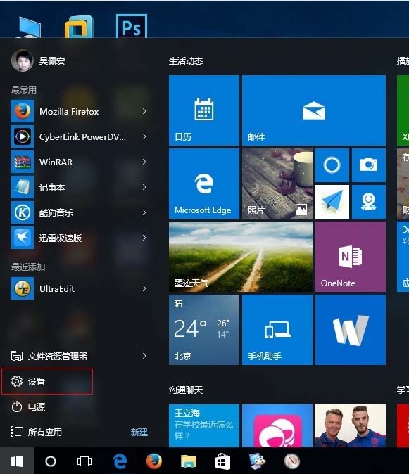 1、我们登录windows10系统,在左下角的“开始”菜单选择【设置】,如图所示。
