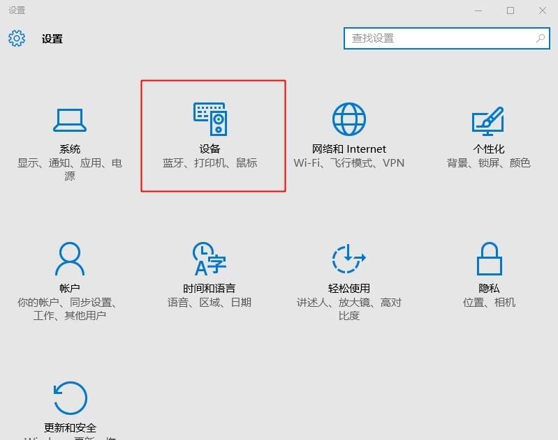 2、进一步,你看到的是设置面板,我们在设置面板找到【设备】,并进入。