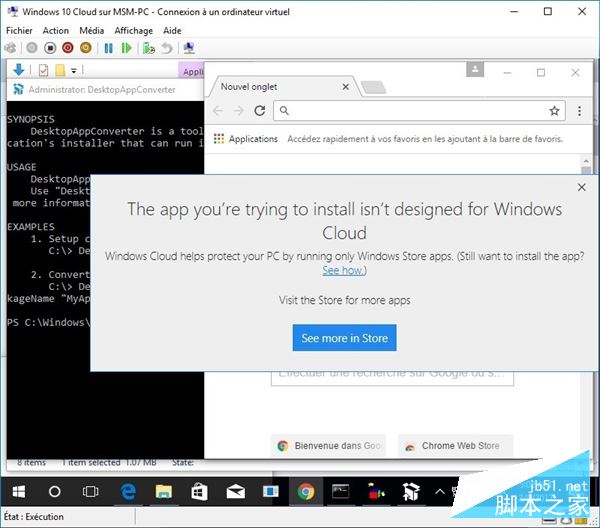 windows 10 clound的思路和chrome os很像,只允许商店的应用(或极少量微软白名单所列的exe),而无法运行我们常见的本地win32程序。