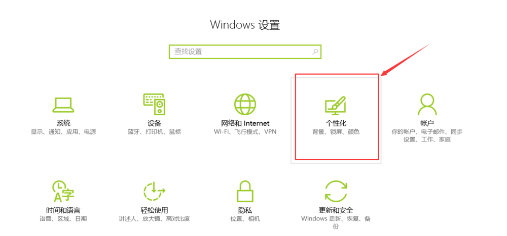 4、进入到系统的设置页面,点击“个性化”,桌面任务栏自动收起属于个性化方案