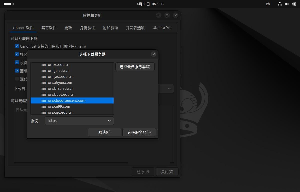 3、点击「选择最佳服务器」自动测试并替换最优软件源。