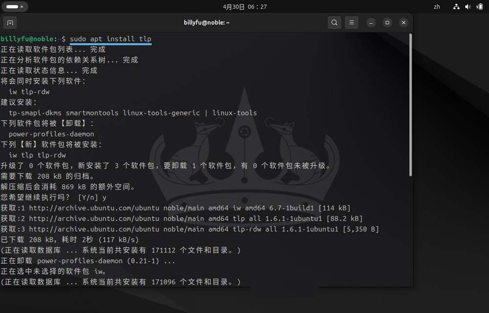 如果你使用笔记本电脑,电池维护就比较重要。虽然 ubuntu 24.04 lts 已经进行了底层能效优化,但我们还可进一步延长电池待机时间。