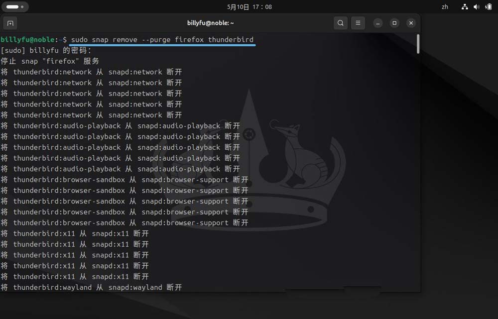 卸载 snap 版本 firefox 和 thunderbird