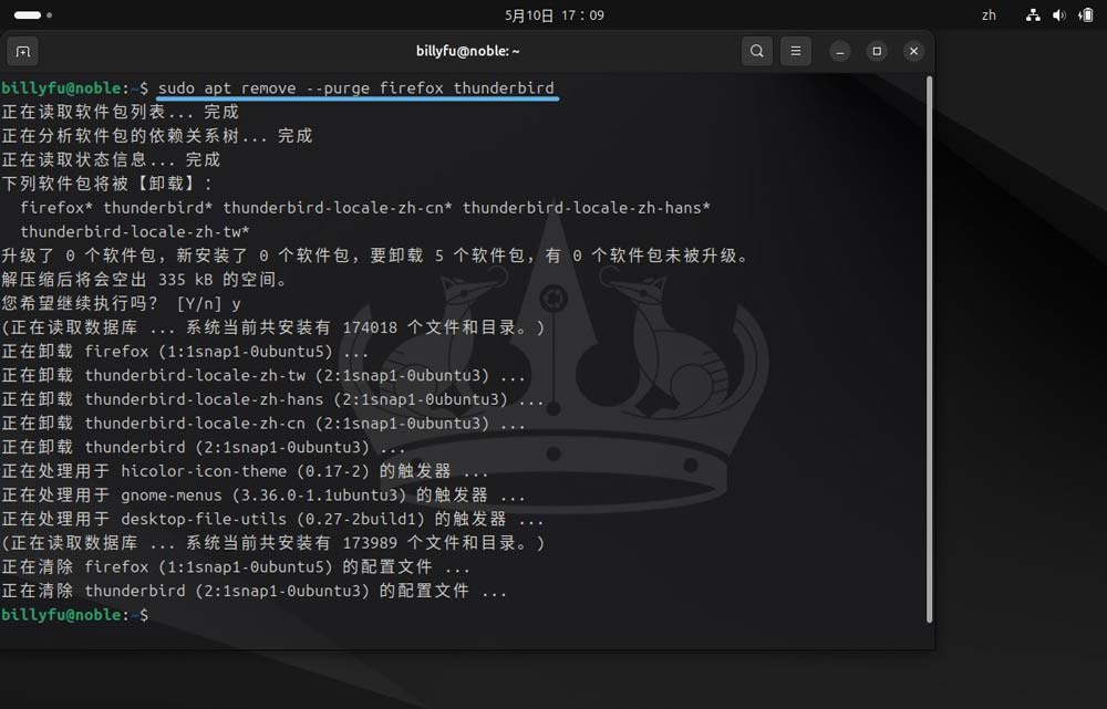 2、卸载重定向到 snap 的 firefox 和 thunderbird 空包: