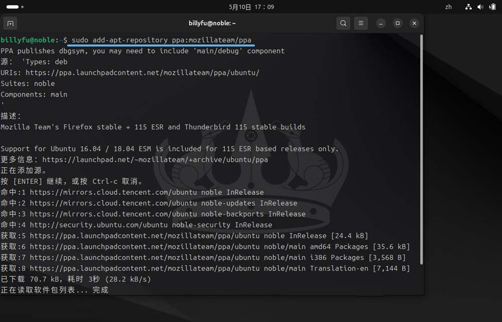 3、添加 mozilla 提供的 ppa,