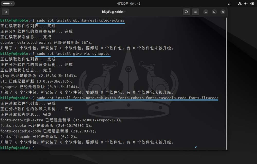 为 ubuntu 24.04 lts 安装额外软件和字体