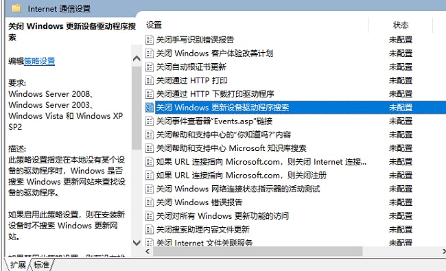 3、接着找到右侧中的"关闭windows 更新(update)设备驱动程序搜索"双击打开。