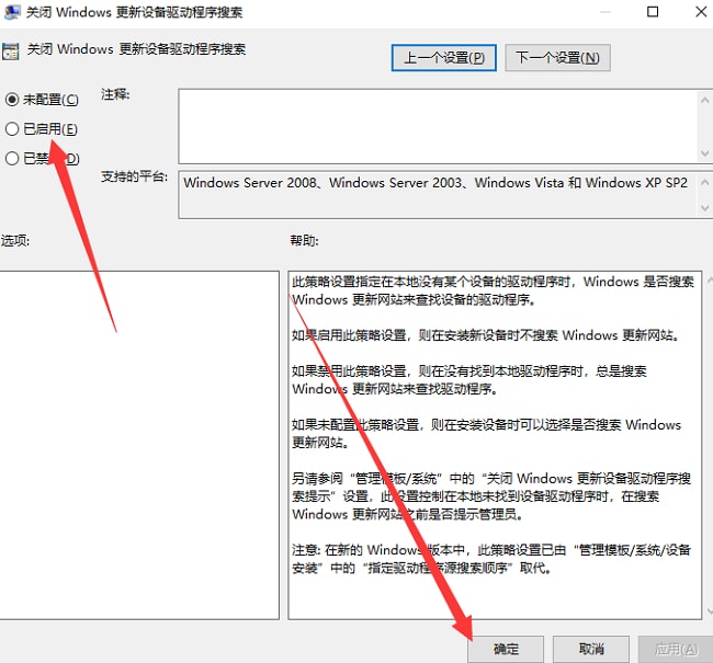 4、然后在打开的窗口界面中,将左上角的"已启用"勾选上,最后点击"确定"并重启电脑就可以了。
