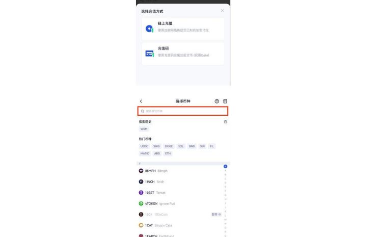 3、选择“链上充值” 并输入充值币种。这里以充值usdt为例。