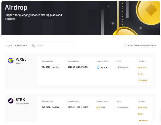 用户需达到项目设定的资格标准,方可参与空投。资格标准包括币安账户中持有特定加密货币、完成某些任务或只需报名参与空投。