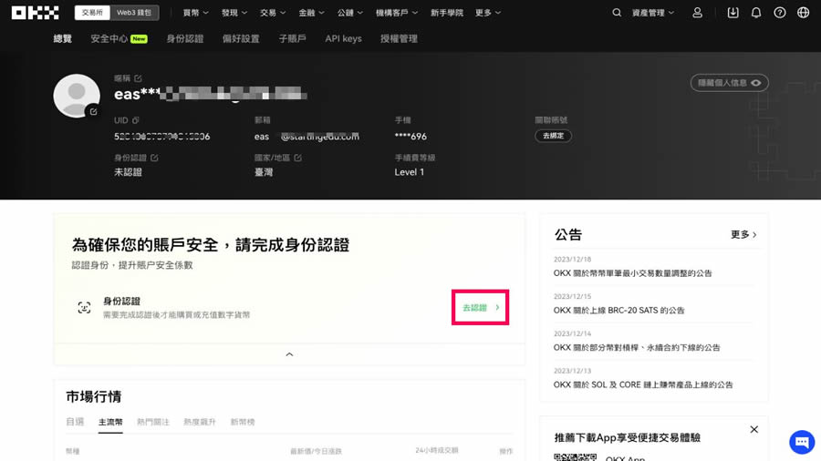 - 帐户安全设置:okx鼓励用户完成多种安全设置,像手机验证和谷歌验证,在充币时要求绑定手机。