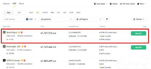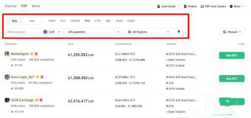 2. 如果要下买单,请找到心仪的广告,然后点击购买按钮开始买币流程。