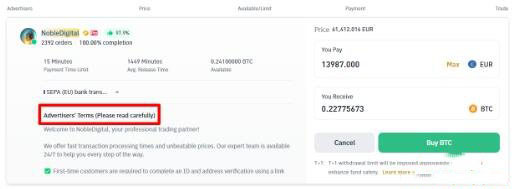 1. 浏览币安 c2c 上的广告,根据个人要求选择合适的交易。币安 c2c 提供多种筛选条件,可助力您轻松筛选出心仪交易。