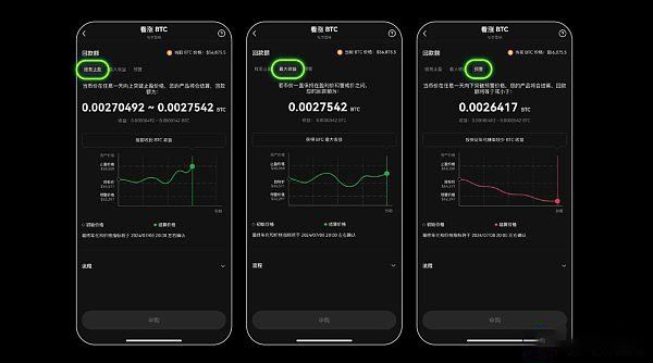 用户只需要投入本金,零额外费用。此外,还可以自定义申购期限、申购金额、申购标的等等。其中, 看涨btc产品起投数量低至0.0004btc,看涨eth产品起投数量低至0.005eth,参与门槛非常低,对广大用户非常友好。此外,okx 屯币雪球可以实现提前止盈、最大收益和预警三种可能的收益场景。