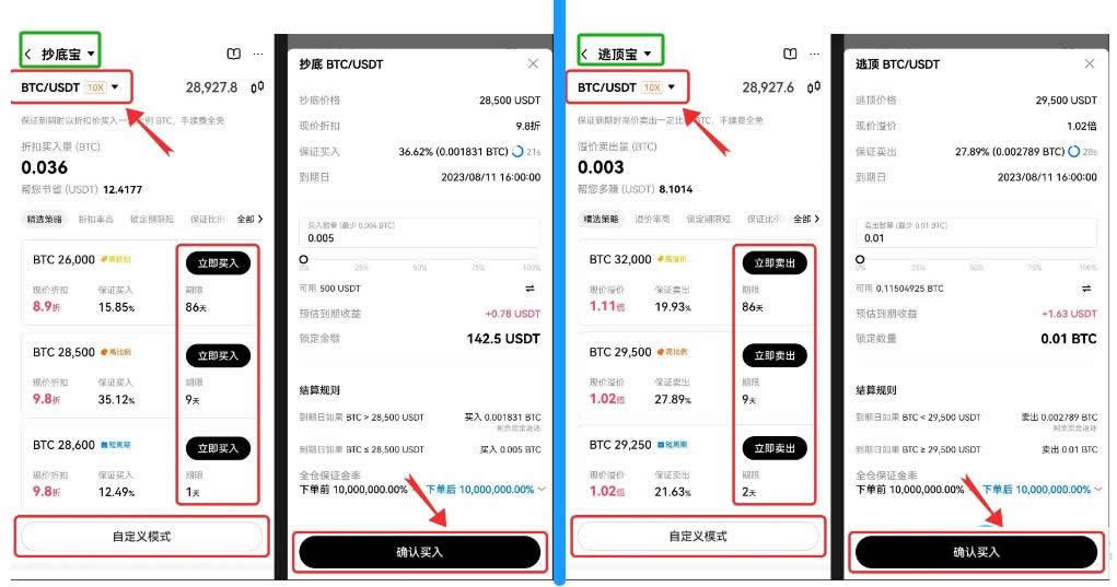 抄底宝是一种折扣抄底的策略交易方式,如果你想低于现在的市场价格买入一定数量的代币,但同时又担心挂单价格较低无法成交。此时使用抄底宝策略锁定低价买入,到期后可以保证你以挂单价格买入锁定数量一定比例或全部的数字资产。