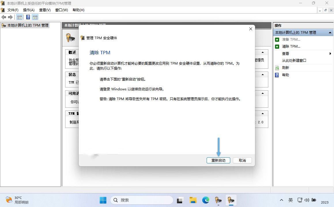 完成上述步骤后,windows 11 将会重新启动,从而完成 tpm 的清除和重置过程。