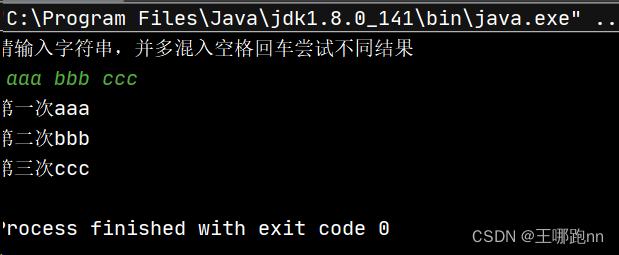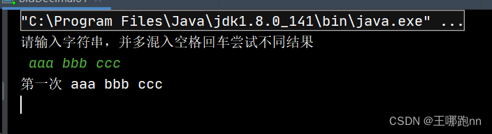 system.out.println("请输入字符串,并多混入空格回车尝试不同结果");