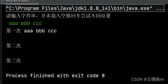 分析结果发现,输出结果与输入结果完全一致,nextline()并没有被字符串中间的空格影响读取结果。