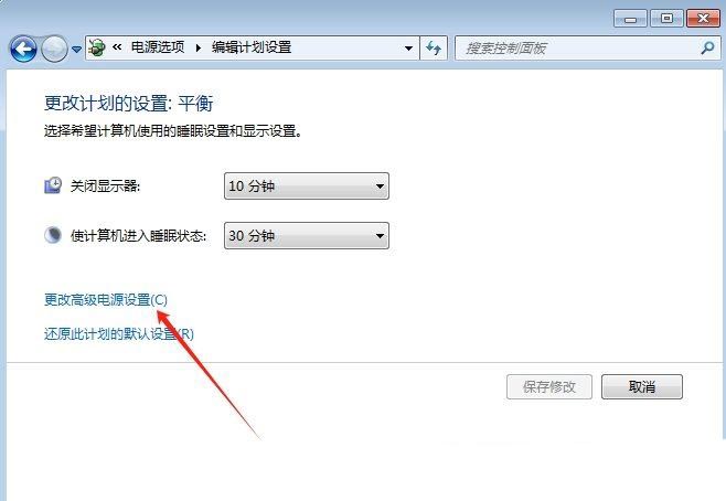 4、随后,在打开的界面中,点击“更改高级电源设置”。