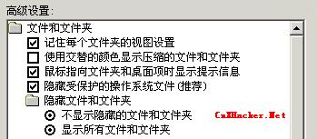 隐藏文件和文件夹里的 “不显示隐藏的文件和文件夹”和“显示所有文件和文件夹”两项