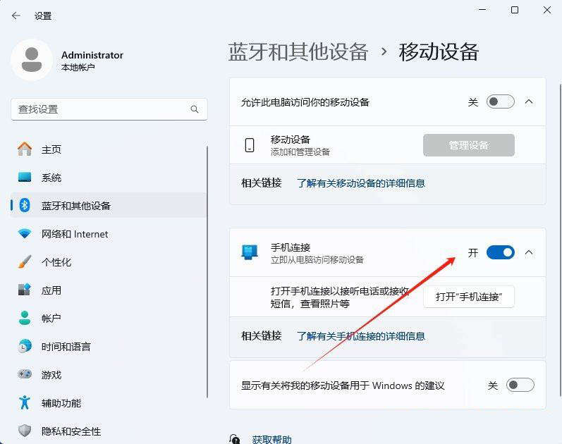 Win11 24H2系统自带的手机连接功能怎么打开使用?