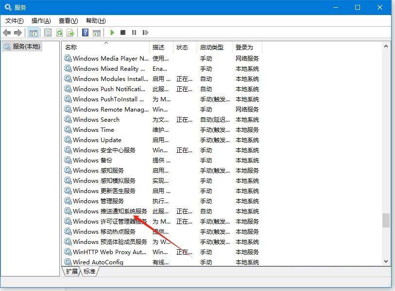 2、接着,在打开的界面中,找到并双击打开“windows 推送通知系统服务”服务。