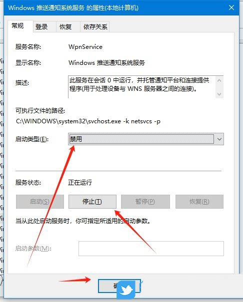 3、然后,在弹出的窗口中,将“启动类型”设置为“禁用”,并停止“服务状态”。