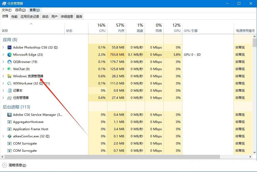 4、随后,打开“任务管理器”界面,重启其中的“windows资源管理器”即可。