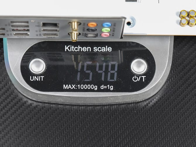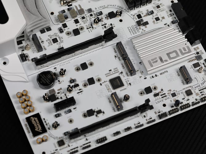 主板的下面采用了一体式的金属覆盖散热马甲,厚度非常夸张,银色的金属质感也非常出色。