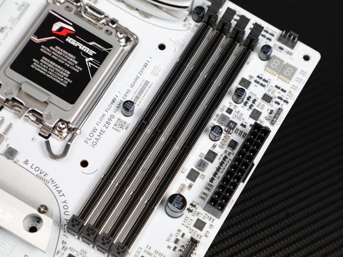 供电方面,七彩虹igame z890 flow使用了20+1+1+1相供电,使用了90a旗舰级的高规格drmos供电,轻松应对旗舰级的英特尔酷睿ultra 9 285k处理器。