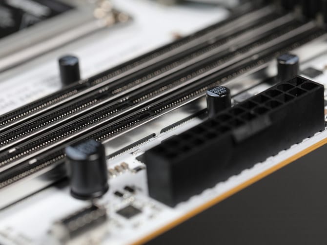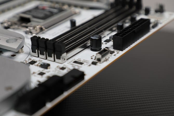 内存方面,提供了4个dimm接口,支持ddr5内存,并且经过金属加固,内存容量至高可以达到192gb,频率可以实现8800mt/s的内存频率,建议插第二和第四根内存使用。