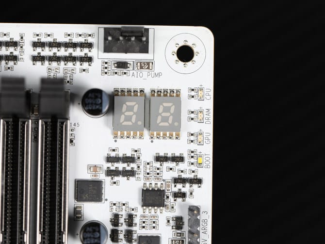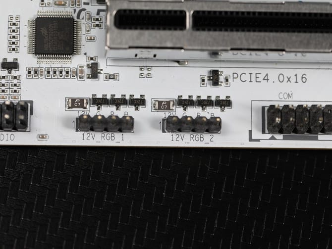 主板支持rgb灯光联动效果,提供了2个12v rgb针脚,3个5v argb针脚,用来外接散热器、风扇等设备,帮助用户打造个性化的炫彩rgb灯光效果,还有rgb开关,用来空