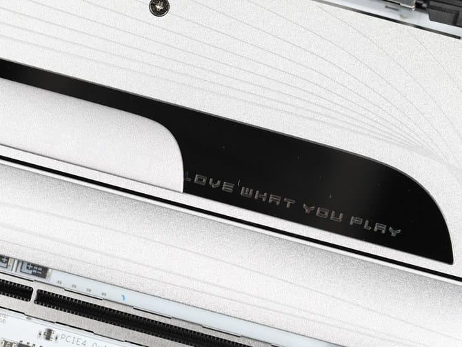 拿掉保护镜面的贴纸之后,整块主板的颜值更为突出,机械装甲风格突出,延续了家族式的冰霜风格,但是更多的曲线线条的加入,又让这块主板看上更加柔和,没有过分的硬朗感觉,从上到下就像是水流动过后,自然形成的柔美线条,视觉过渡更加和谐柔美,加入了非常不错的中国风元素进入,也正如道德经中所说的“水利万物而不争”的这种浑然一体,自上而下的周天循环。