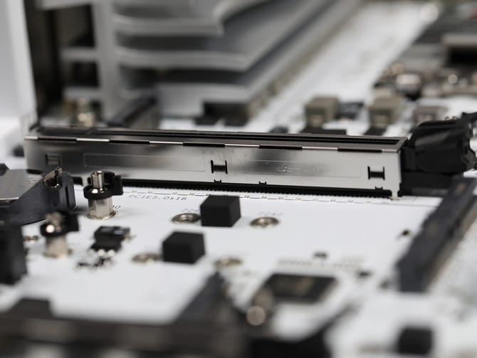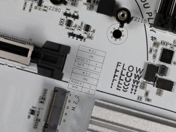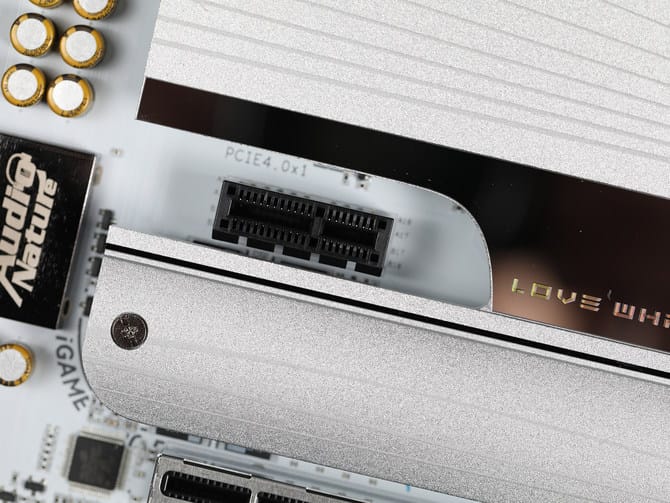 igame z890 flow提供了2个金属加固的pcie接口,上面的为pcie 5.0*16,下面一条为pcie 4.0*16。