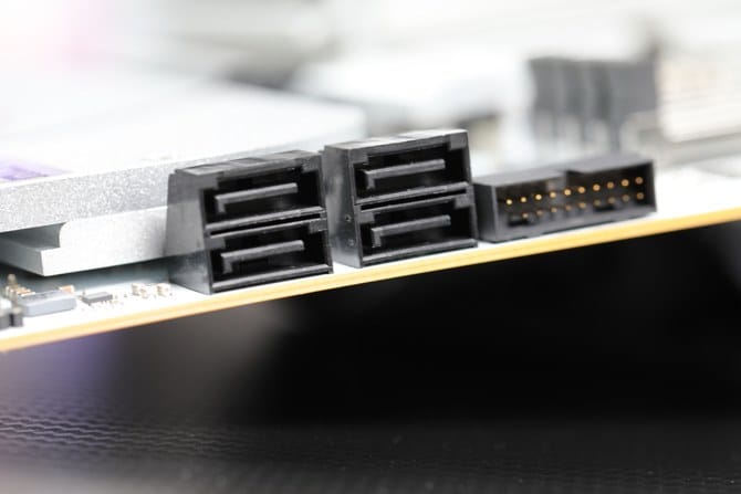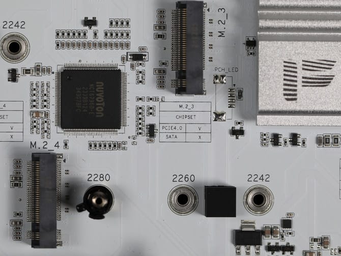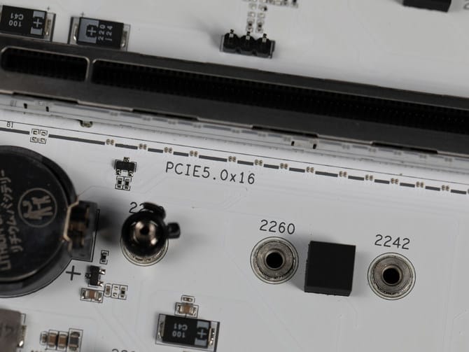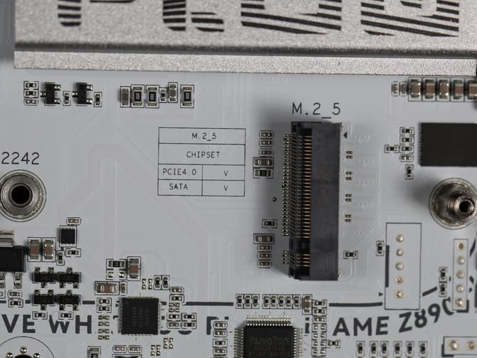 拿掉散热片之后,下面共提供了5个m.2接口,其中最上面的支持pcie 5.0*4,其余的四个均为pcie 4.0。