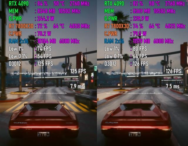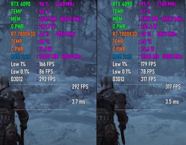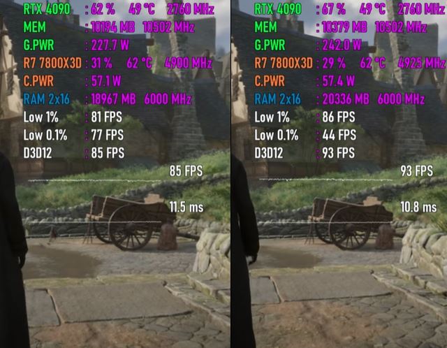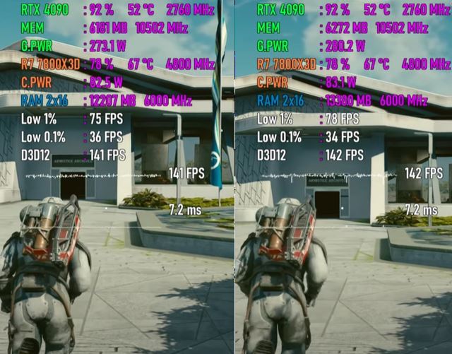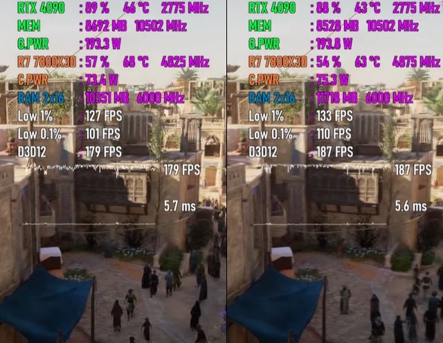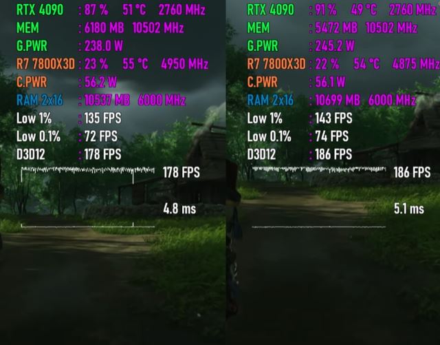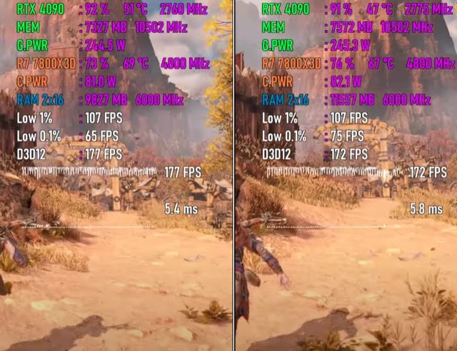 以下将分别测试七款游戏,均采用1080p最高画质模式,以下系列图片中左边代表windows 10 22h2平台,右边代表windows 11 24h2平台。