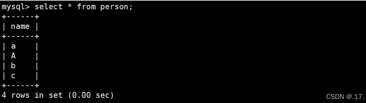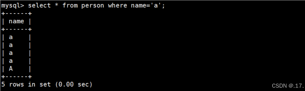 utf8_bin,在这种校验规则下,字符的比较是区分大小写的。 - 大小写不敏感:如