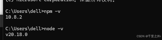 在cmd控制台输入node -v和npm -v(注意中间有个空格)验证是否安装成功。