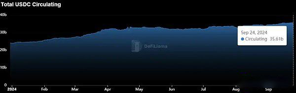 虽说硅谷银行破产事件对 usdc 带来巨大冲击,但在 2024 年 7 月开始,usdc 先是在 sol 上新增铸造 2.5 亿枚 usdc; 8 月继续在 sol 上新增铸造 2 次 2.5 亿美元的 usdc,在以太坊则是增发 2 次 5000 万美元的 usdc