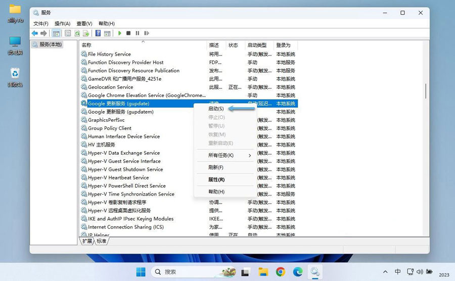 2、右键单击要管理的服务 – 然后选择「开始」、「停止」或「重新启动」。