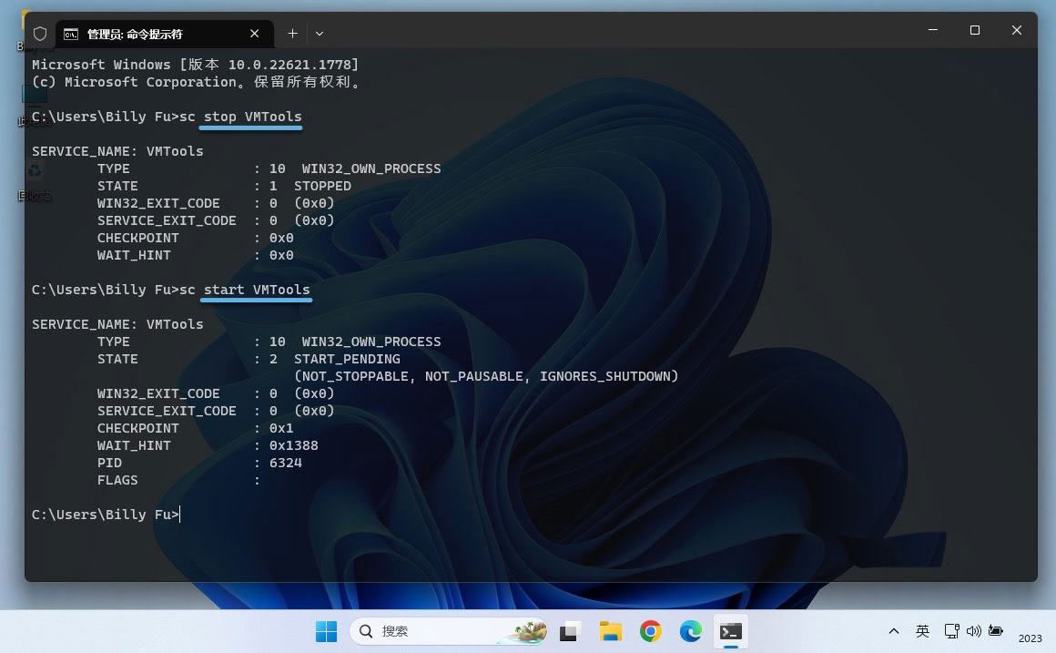 2、要从「命令提示符」中停止 windows 服务,请使用以下命令: