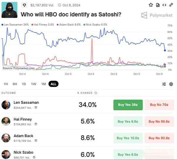 len sassaman是中本聪吗?为何hbo认为他最可能是中本聪?在加密行业人士活跃的polymarket市场上,有34%的人认为hbo纪录片揭示的中本聪是len sassaman,远高于在行业较为出名的hal finney、blockstream ceo adam back和智能合约之父nick szabo。